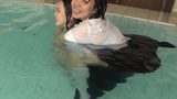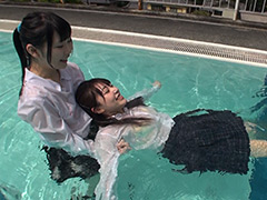 前回の模試で結果がよくなかった先輩。そんな不安げな先輩と頼もしい後輩と2人の願掛け。「まぁまぁとにかくプールに行きましょ♪」と誘う後輩についていき、制服姿のままシャワー、そしてプールへ…。